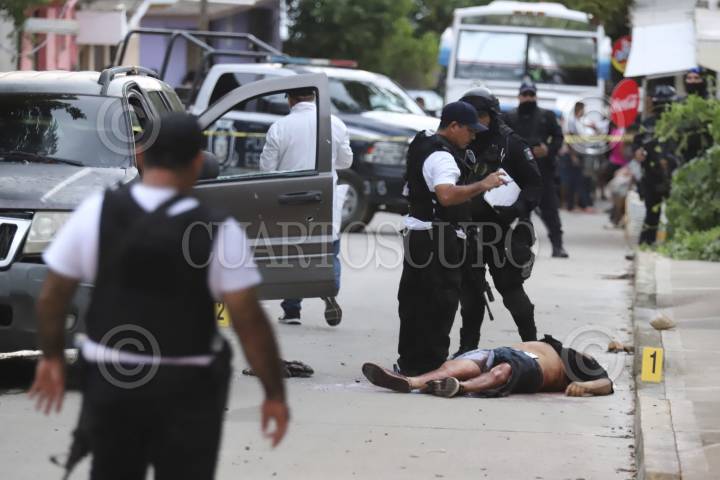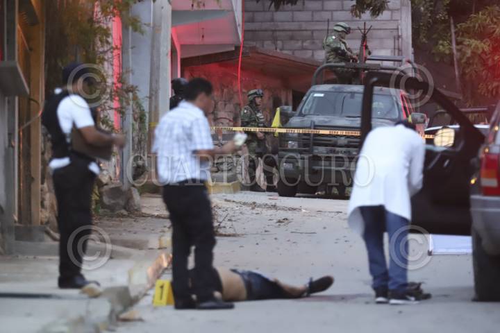 ACAPULCO, GUERRERO, 19AGOSTO2019.- Un enfrentamiento y balacera registrada en la calle Retorno Almendros de la colonia Jardín Azteca, dejó el saldo de un hombre muerto al enfrentarse con policías estatales y municipales. Los presuntos delincuentes viajaban en una camioneta marca Jeep tipo Cherokee con placas de Guerrero. Uno de los delincuentes quedó muerto en la calle, mientras que los demás se dieron a la fuga a bordo de otro vehículo. Una mujer embarazada que se hallaba a la hora de los hechos, se asustó y sufrió una crisis nerviosa, siendo atendida por los paramédicos de la Cruz Roja. Empleados del Servicio Médico Forense llevaron a cabo las diligencias del levantamiento cadavérico quedando en calidad de desconocido en el lugar de los hechos se encontraron barios casquillos percutidos. FOTO: BERNANDINO HERNÁNDEZ /CUARTOSCURO.COM