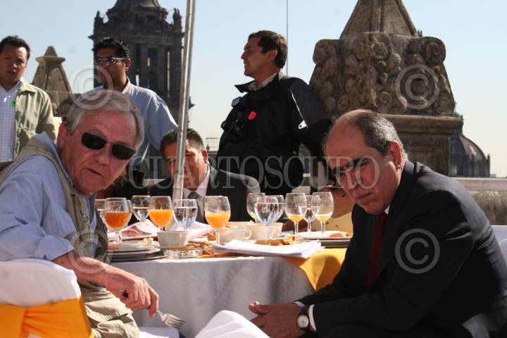 MÉXICO, D.F., 17DICIEMBRE2008.- Paco Ignacio Taibo II y Salvador Martínez Della Roca, conversan en las escalinatas de la ALDF en la cual se realizó la ceremonia de la entrega de las Medallas al Mérito en Ceincia y Artes. FOTO: MOISÉS PABLO/CUARTOSCURO.COM
