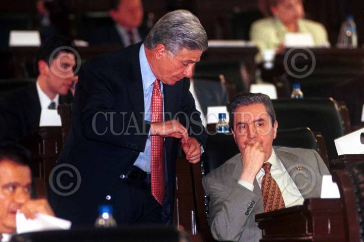 Sesion tranquila en la cámara alta. Aqui Demetrio Sodi conversa con Humberto Roque Villanueva. FOTO: Oswaldo Ramirez/CUARTOSCURO.COM