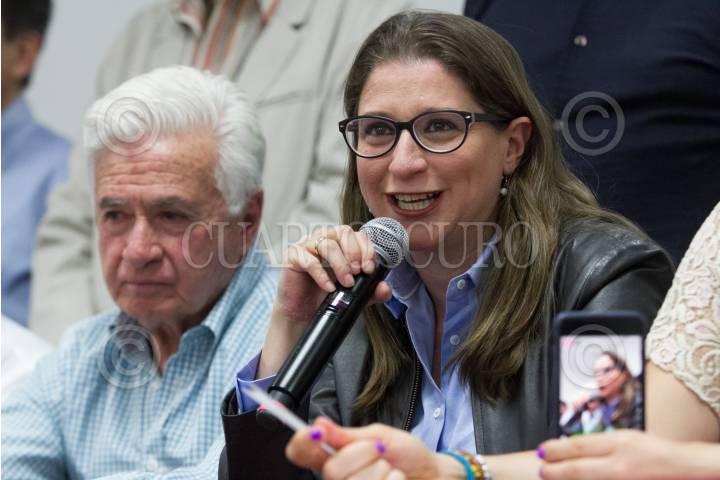 CIUDAD DE MÉXICO, 08ABRIL2018.- Margarita Martínez Fisher, candidata del PAN a la alcaldía de Miguel Hidalgo, ofreció una conferencia para dar a conocer que Demetrio Sodi, quien se había postulado como candidato ciudadano a la alcaldía de Miguel Hidalgo, se suma a su campaña como coordinador ciudadano de su campaña. En primera fila Humberto Morgan, Demetrio Sodi, Margarita Fisher, y Mariana Gómez del Campo. FOTO: MOISÉS PABLO /CUARTOSCURO.COM