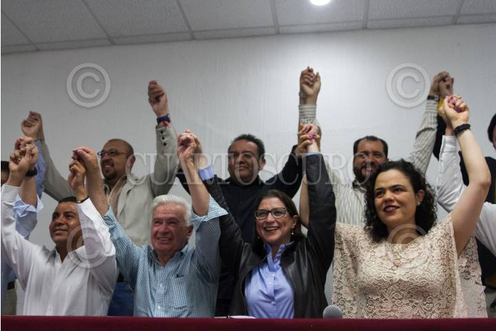 CIUDAD DE MÉXICO, 08ABRIL2018.- Margarita Martínez Fisher, candidata del PAN a la alcaldía de Miguel Hidalgo; Mauricio Tabe Echertea, presidente del PAN de la Ciudad de México, y Demetrio Sodi quien se había postulado como candidato ciudadano a la alcaldía de Miguel Hidalgo, ofrecieron una conferencia de prensa para dar a conocer la adhesión de Sodi de la Tijera como coordinador ciudadano de la campaña de Martínez Fisher. FOTO: MOISÉS PABLO /CUARTOSCURO.COM