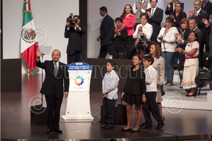 MÉXICO, D.F., 28MARZO2012.- Felipe Calderón Hinojosa Presidente de México, acompañado de su esposa Margarita Zavala y de sus hijos, encabezo el informe “Un Gobierno Democrático que Rinde Cuentas” que se realizo en el Auditorio Nacional. FOTO: GUILLERMO PEREA /CUARTOSCURO.COM