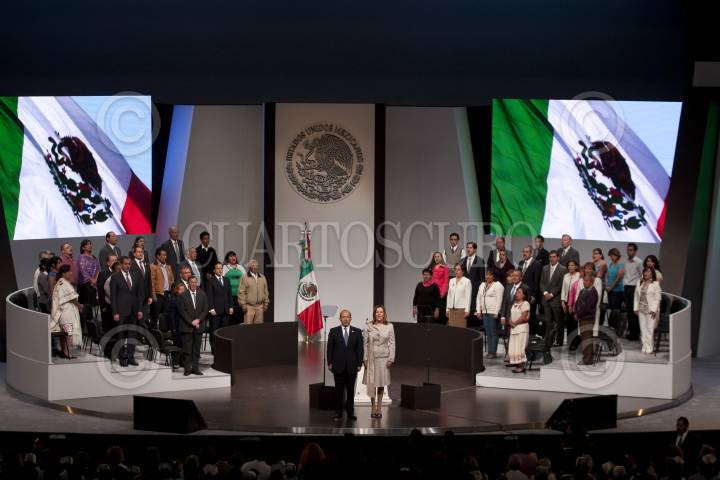 MÉXICO, D.F., 28MARZO2012.- Felipe Calderón Hinojosa Presidente de México, acompañado de su esposa Margarita Zavala, durante el informe “Un Gobierno Democrático que Rinde Cuentas” que se realizo en el Auditorio Nacional. FOTO: GUILLERMO PEREA /CUARTOSCURO.COM