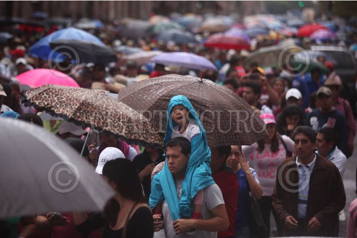 MORELIA, MICHOACÁN, 09MARZO2015.- Unos cinco mil maestros de la CNTE y sindicatos adheridos al Frente Cívico Social marcharon de dos puntos de la capital michoacana para concentrase en el centro histórico. Exigieron sus pagos atrasados y mantener las claves docentes para evitar que se entreguen al Servicio Profesional Docente. Los maestros dijeron que ante la falta de respuesta a sus demandas preparan un paro indefinido que comenzará el próximo 18 de marzo. FOTO: ALAN ORTEGA / CUARTOSCURO.COM