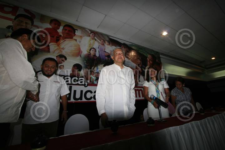 OAXACA, OAXACA, 21MARZO2016.- El presidente del partido Movimiento de Regeneración Nacional (Morena), Andrés Manuel López Obrador firmó este lunes un acuerdo con profesores pertenecientes a la sección 22 de la Coordinadora Nacional de los Trabajadores de la Educación (CNTE), el cual también fue firmado por el candidato a la gubernatura, Salomón Jara y maestros, en este se compromete que de ganar las elecciones del próximo mes de junio iniciará una serie de cambios en la administración estatal en beneficio de la educación. Entre estos compromisos señala que se creará la Secretaría de Educación Pública cuyo titular será elegido de una terna propuesta por el magisterio democrático, además de la presentación y aprobación de una Ley Estatal de Educación basada en el Plan para la Transformación de la Educación de Oaxaca (PTEO) . FOTO: ARTURO PÉREZ ALFONSO /CUARTOSCURO.COM