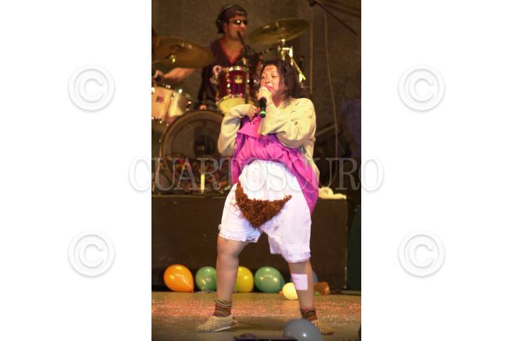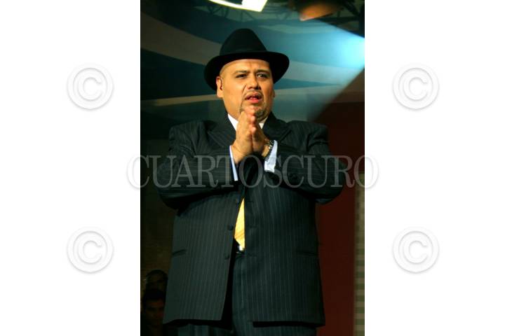 MEXICO D.F. 12ENERO2005.- En el escenario del Teatro "Blanquita" fue anunciada la temporada de festejo de los 10 años de carrera artística de Liliana Arriaga " La chupitos". En la imagen, el imitador Javier Miranda, el cantante Tizoc , Lila Deneken y Liliana Arriaga durante la sesión de fotos. FOTO: Germán Romero/CUARTOSCURO.COM