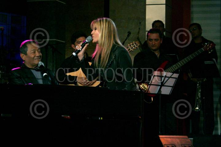 MÉXICO, D.F., 19SEPTIEMBRE2006.- El compositor y cantante yucateco Armando Manzanero, fue el invitado estelar en el programa "Es de noche... y ya llegue", que conduce René Franco, el cual cumplió su primer año de transimisión. Durante su interpretación, la cantante Lila Deneken acompañó al compositor. FOTO: ISAAC ESQUIVEL/CUARTOSCURO.COM
