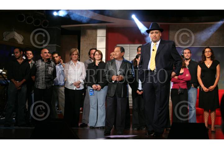 MÉXICO, D.F., 19SEPTIEMBRE2006.- El equipo de producción del programa "Es de noche... y ya llegue", que conduce René Franco, acompaño al conductor durante su primer año de transimisión, en el que tuvieron de invitado estelar al compositor y cantante yucateco Armando Manzanero. FOTO: ISAAC ESQUIVEL/CUARTOSCURO.COM