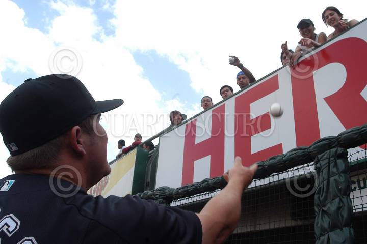 MEXDF13MARZO2004.- Dennis Anderson regala pelotas a los aficionados que asistierón al juego entre los Marlins de Florida vs Astros de Houston. FOTO: Germán Romero/CUARTOSCURO.COM