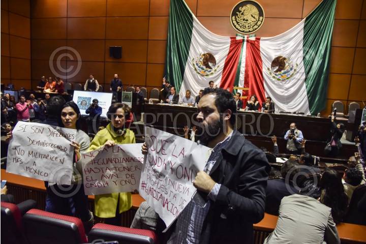 CIUDAD DE MÉXICO, 20DICIEMBRE2018.- Esta tarde la Comisión de Puntos Constituciones de la Cámara de Diputados aprobó en lo general el dictamen de creación de la Guardia Nacional, con una votación de 18 a favor, 6 en contra y cero abstenciones. Durante la realización de la sesión, hubo reclamaciones y protestas de organizaciones de la sociedad civil, entre las cuales se encontraba la politóloga Denise Dresser y Alfredo Lecona. FOTO: MARIO JASSO /CUARTOSCURO.COM