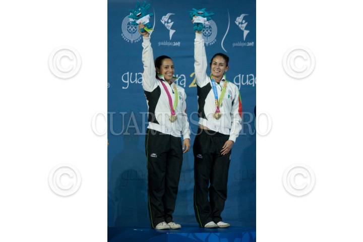 GUADALAJARA, JALISCO, 27OCTUBRE2011.-Tatiana Ortiz y Paola Espinosa obtuvieron la medalla de oro en clavados sincronizados durante los Juegos Panamericanos de Guadalajara 2011. FOTO: IVÁN STEPHENS/CUARTOSCURO.COM