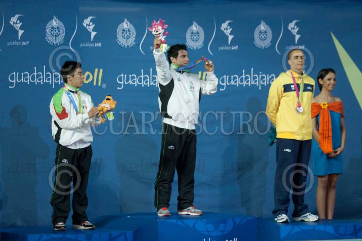 GUADALAJARA, JALISCO, 27OCTUBRE2011.- Yahel Castillo obtuvo el oro y Julian Sánchez la plata en los clavados de los Juegos Panamericanos Guadalajara 2011. FOTO: IVÁN STEPHENS/CUARTOSCURO.COM