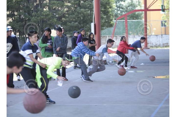 Maestros de educación deportiva, participan en un reto de activación física en la explanada del IEBEM, aprovechando la reunión exigieron un trato igualitario y mejores condiciones laborales a las autoridades educativas.