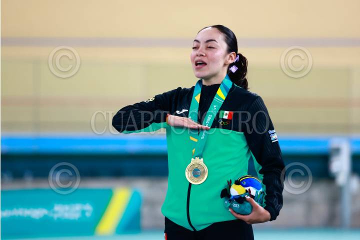 SANTIAGO, CHILE, 26OCTUBRE2023.- La ciclista mexicana Yareli Acevedo obtuvo la medalla de oro en prueba de ciclismo de velocidad, en el Velódromo de Peñalolén, durante los Juegos Panamericanos Santiago 2023. FOTO: CÉSAR GÓMEZ/CUARTOSCURO.COM