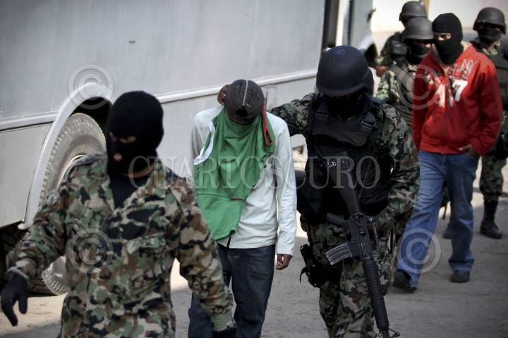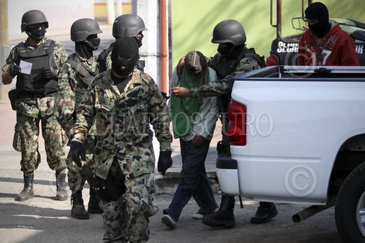 MEDELLÍN, VERACRUZ, 30DICIEMBRE2011.- Personal de la Secretaría de Marina realizó la detención de 7 elementos de la Policía Municipal de Medellín, luego de recibir una denuncia anónima que vinculaba a los uniformados con actos de extorsión y robo a los ciudadanos. Los primeros reportes indicaban que los policías habían sido plagiados de una caseta de seguridad, por lo que familiares y compañeros se encontraban preocupados ya que no sabían su paradero, sin embargo, por la tarde la Armada de México los puso a disposición del Ministerio Público. FOTO: FÉLIX MÁRQUEZ/CUARTOSCURO.COM