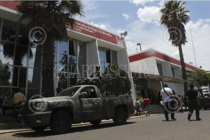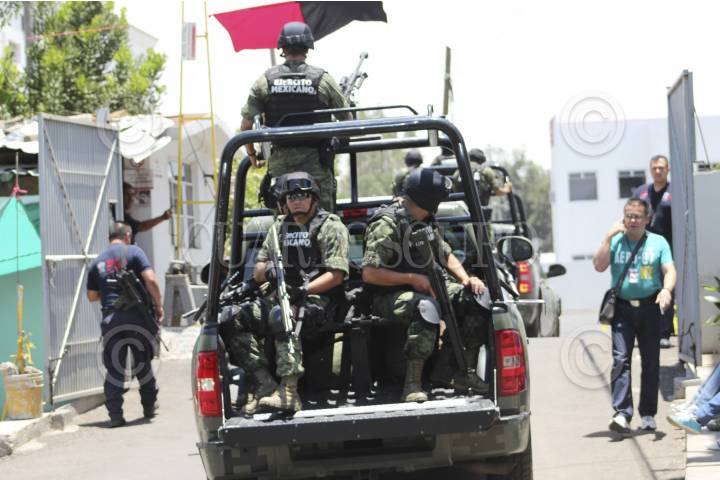 MORELIA, MICHOACÁN, 30ABRIL2014.- Fueron despedidos más de 100 elementos que laboraban en la Procuraduría General de Justicia del Estado (PGJE), como parte de la depuración total en dicha dependencia que había anunciado el comisionado por Michoacán, Alfredo Castillo Cervantes. Supuestamente los elementos ministeriales y operativos no aprobaron los exámenes de control y confianza. Miembros de la Sedena arribaron al lugar por cualquier movimiento que pudiera surgir ante el despedido masivo de los miembros de la seguridad estatal. FOTO: JUAN JOSÉ ESTRADA SERAFÍN /CUARTOSCURO.COM