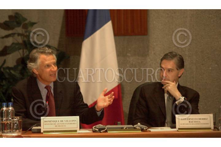 México D.F. 05 FEBRERO 2004.- Dominique De Villerpin, homólogo del canciller Luis Ernesto Derbez, durante la conferencia de prensa realizada en el salón Luis Padilla en las instalaciones de la secretaría de Relaciones Exteriores. FOTO: Sandra Perdomo/CUARTOSCURO.COM