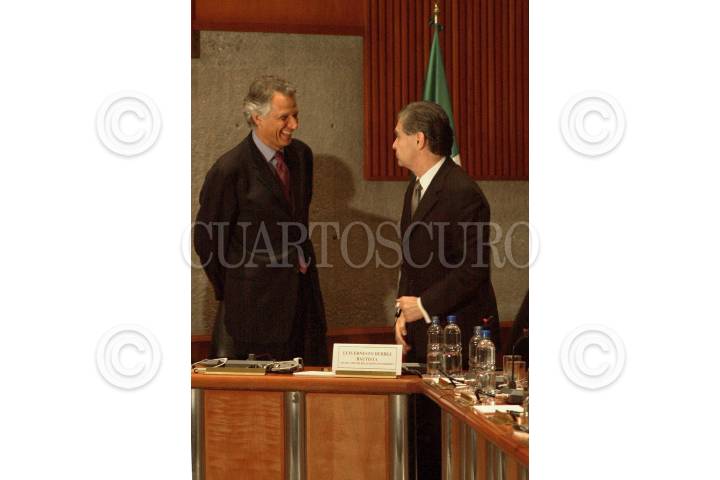 MEXICO, D.F., 23JUNIO2005.- Daniel Cabeza de Vaca, Procurador de la República y Luis Ernesto Derbez, secretario de Relaciones Exteriores, durante la toma de Protesta del Consejo de Participación Ciudadana, en la residencia oficial de los Pinos. FOTO: Moisés Pablo/CUARTOSCURO.COM