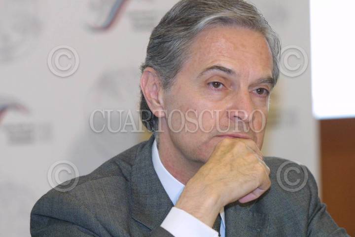 MEXICO, DF 29JUNIO2005.- El secretario de relaciones exteriores Luis Ernesto Derbez durante la conferencia conjunta con la alta comisionada de naciones unidas para los derechos humanos Louise Arbour ofrecida en las instalaciones de la cancillería mexicana. FOTO: Miguel Dimayuga/CUARTOSCURO.COM