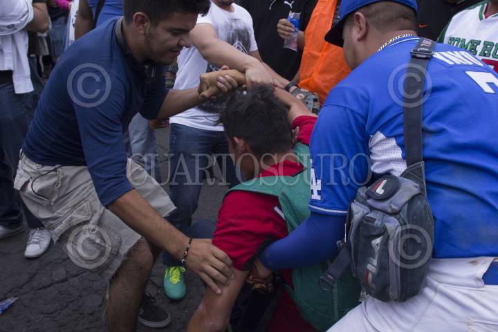 MÉXICO, 14JUNIO2015.- Algunas personas resultaron con golpes al intentar ganar las pelotas lanzadas por los peloteros en el Home Run Derby en el Zócalo Capitalino donde miles de personas pudieron apreciar a bateadores de la Liga Mexicana de Béisbol. FOTO: ENRIQUE ORDÓÑEZ /CUARTOSCURO.COM