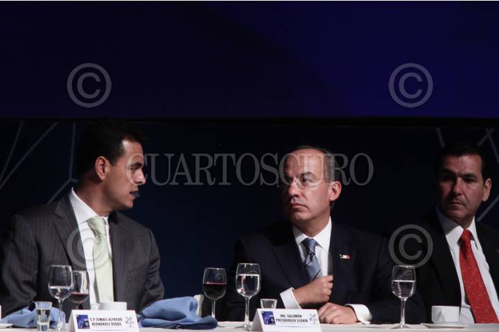MÉXICO, D.F., 23MARZO2009.- Ismael Alfredo Hernández Dereas Gobernador del estado de Durango conversa con Felipe Calderon Presidente de México durante la 91 asamblea general ordinaria de la (CONCAMIN). FOTO: SÁSHENKA GUTIERREZ/CUARTOSCURO.COM