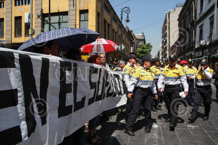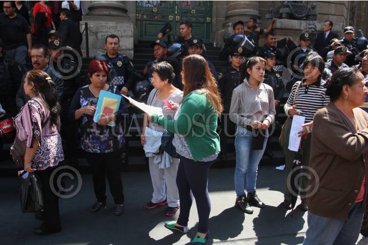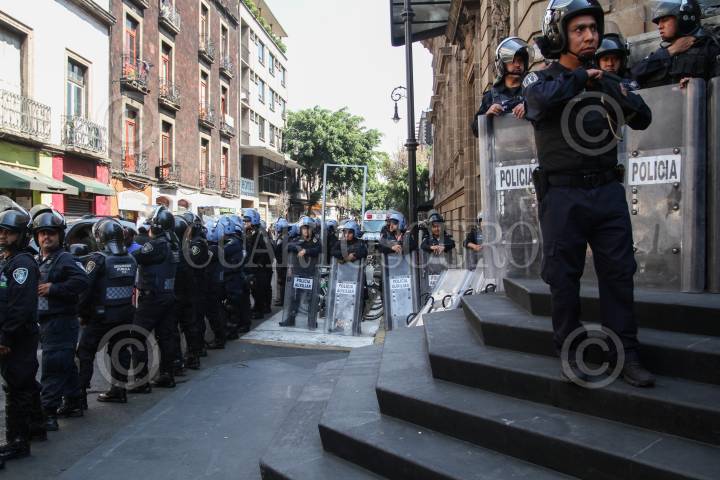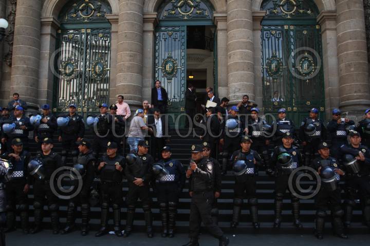 MÉXICO, D.F., 16ABRIL2015.- Integrantes de la Asamblea de Barrios bloqueo la Asamblea Legislativa del Distrito Federal e impidieron la entrada y salida de cualquier persona. Con mantas y banderas, hombres y mujeres de la Asamblea de Barrios gritaban y amenazaban "Si no hay solución nos quedamos en plantón". Despues de unos minutos alrededor de 100 granaderos retiraron a los manifestantes y custodiaron el edificio. FOTO: ISABEL MATEOS /CUARTOSCURO.COM