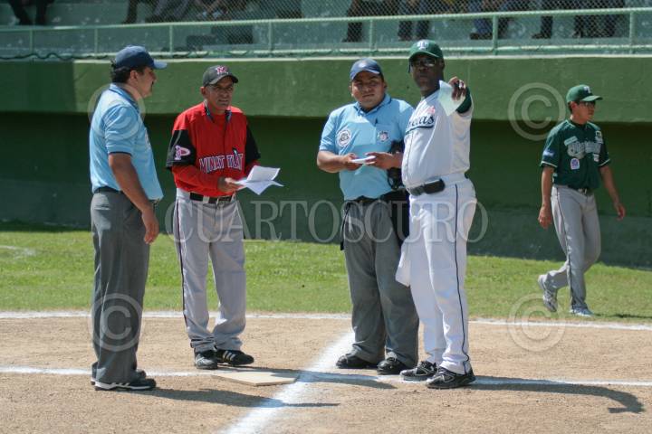 JALAPA, TABASCO, 05MARZO2011.- Derek Bryant, manager de los Olmecas de Tabasco y Víctor Figueroa Figueroa, manager de los Petroleros de Minatitlán. FOTO: MARCO POLO GUZMÁN HERNÁNDEZ/CUARTOSCURO.COM