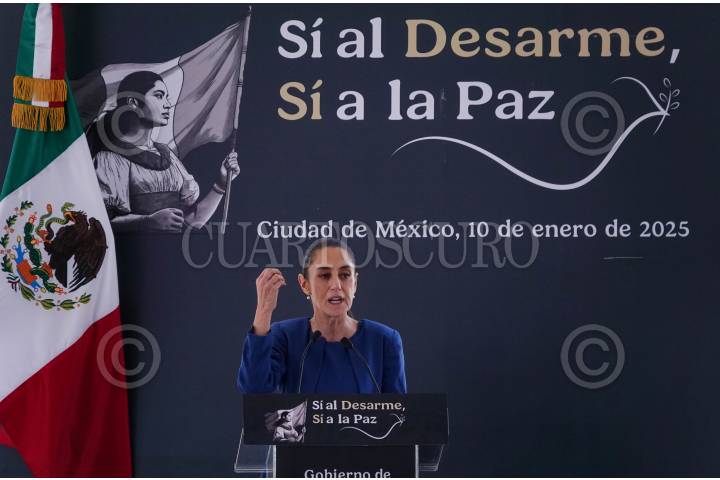 CIUDAD DE MÉXICO, 10ENERO2025.- La presidenta Claudia Sheinbaum encabezó el arranque de la campaña Sí al Desarme Sí a la Paz en las inmediaciones de la Basílica de Guadalupe con el que se busca reducir los índices de violencia. FOTO: PRESIDENCIA/CUARTOSCURO.COM