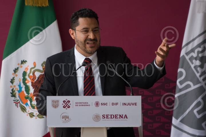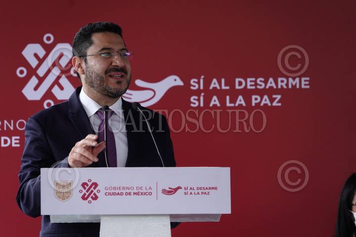 Salvador Guerrero Chiprés durante el desarme voluntario "Sí al Desarme. Sí a la Paz" en la alcaldía Benito Júarez.