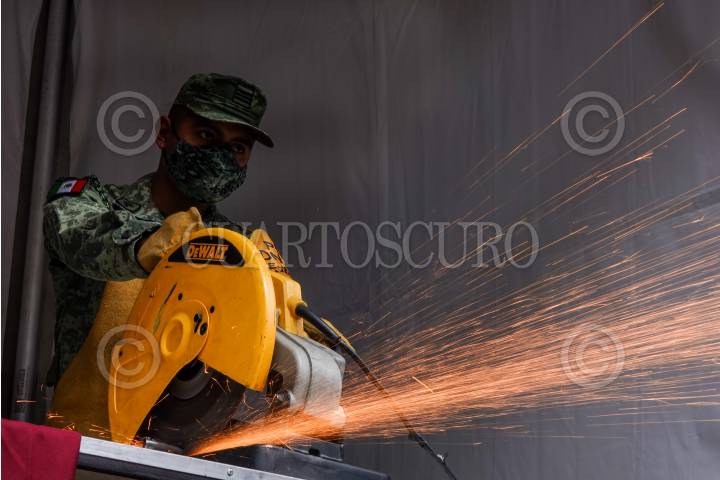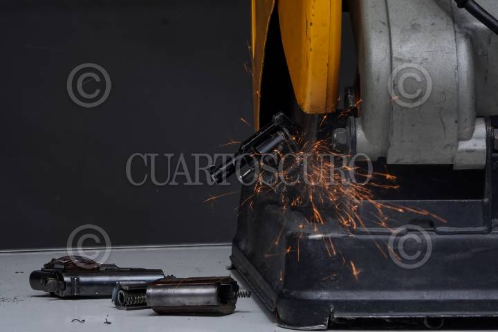 Elemento de la Secretaría de la Defensa Nacional (SEDENA) destruye arma de fuego entregada al programa "Sí al Desarme. Sí a la Paz" en la alcaldía Benito Juárez.