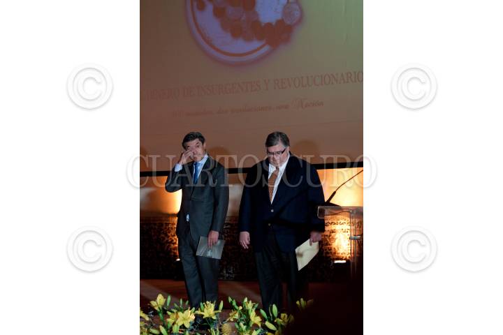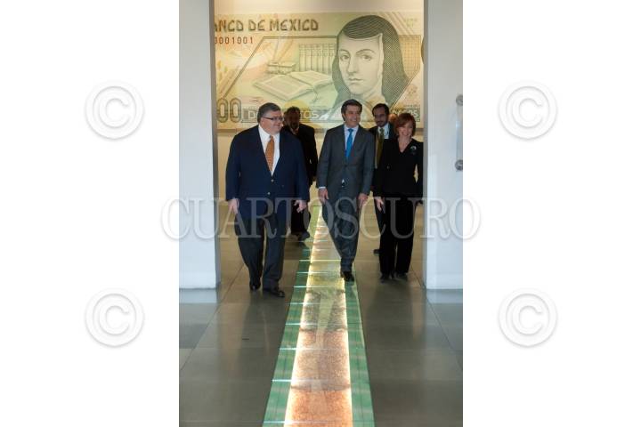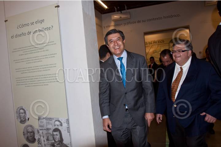 MÉXICO, D.F., 29NOVIEMBRE2010.- Ignacio Deschamps, presidente de la Asociación de Bancos de México y Presidente del Consejo de Administración de BBVA Bancomer y Agustin Carstens Carstens, Gobernador del Banco de México, presidieron e inauguraron la exposición: "El Dinero de Insurgentes y Revolucionarios, 800 monedas, dos revoluciones, una nación", que se realizó en el Museo Interactivo de Economía. FOTO: MISAEL VALTIERRA/CUARTOSCURO.COM