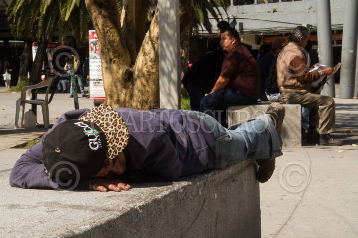 MÉXICO, D.F., 14ENENRO2015.- Un hombre toma una siesta en una de la bancas de la glorieta de Insurgentes. FOTO: ISABEL MATEOS /CUARTOSCURO.COM