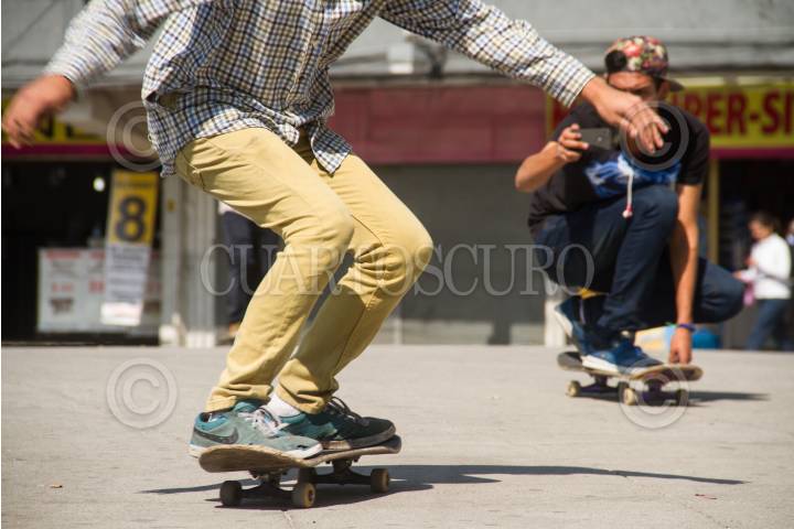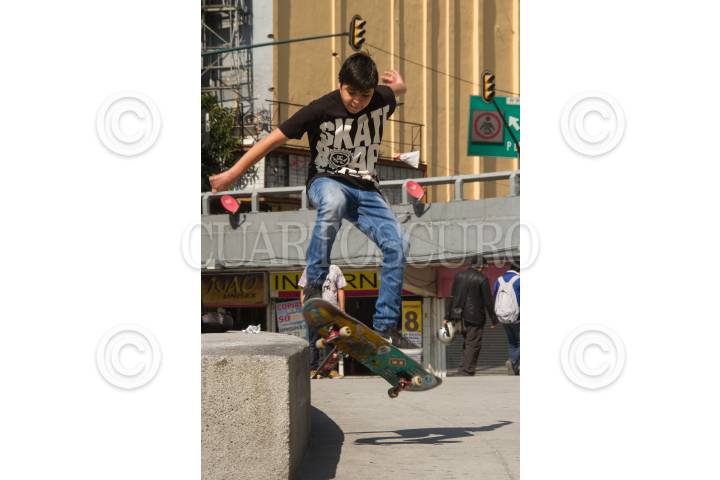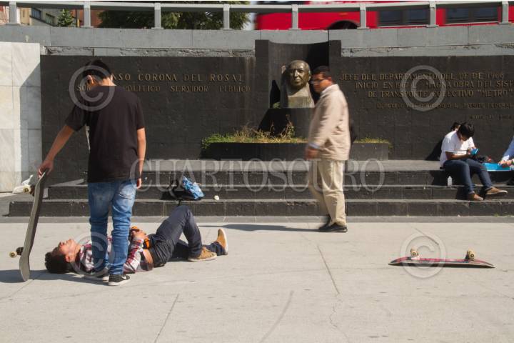 MÉXICO, D.F., 14ENENRO2015.- Un grupo de jóvenes practica truco en patineta en la explanada de la glorieta de Insurgentes. FOTO: ISABEL MATEOS /CUARTOSCURO.COM