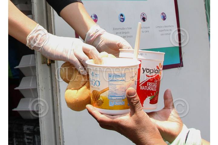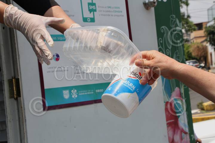 Personas hacen largas filas por comida en la zona de hospitales de Tlalpan.