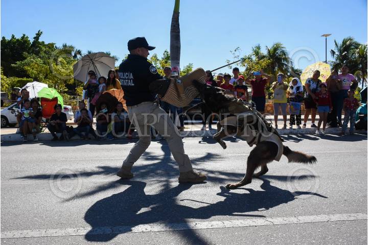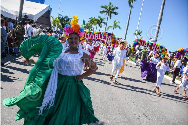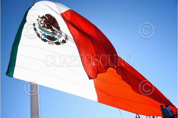 CAMPECHE, CAMPECHE, 20NOVIEMBRE2023.- Con el Izamiento de la bandera monumental, dio inicio el desfile cívico en conmemoración del CXIII aniversario del inicio de la revolución mexicana que se llevó a cabo en el malecón de la ciudad y en la que participaron varias escuelas así como también la marina, el ejército entre otros. FOTO: MICHAEL BALAM/CUARTOSCURO.COM