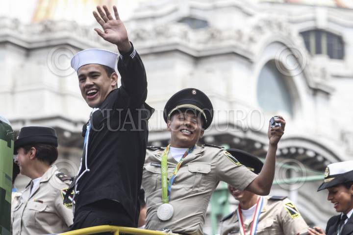 CIUDAD DE MÉXICO, 16SDEPTIEMBRE2016.- En la imagen, al centro, Germán Sánchez, medallista olímpico. El tradicional desfile militar dio inició esta mañana para conmemorar el aniversario de la Independencia del país. En esta edición participaron 23 mil 471 integrantes de las Fuerzas Armadas y civiles, entre personal de la Secretaría de Marina, Defensa Nacional y Policía Federal. FOTO: MARÍA JOSÉ MARTÍNEZ /CUARTOSCURO.COM