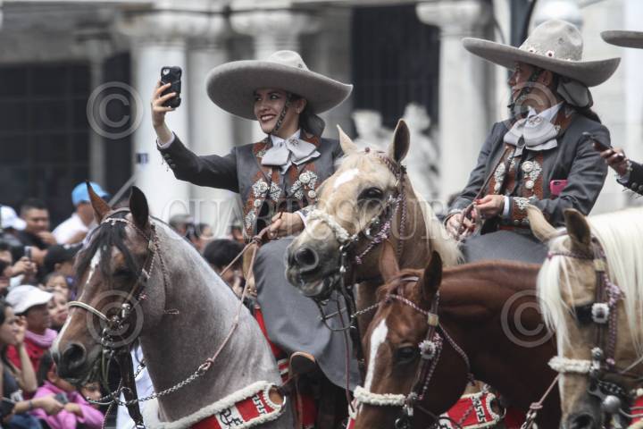 MÉXICO, D.F., 16SEPTIEMBRE2015.- Como dicta la tradición, charros, escaramuzas, atletas locales, estudiantes y vecinos de Xochimilco participaron en el desfile para conmemorar el aniversario de la Independencia de México. Partieron del Centro Deportivo Xochimilco con dirección hacia el centro delegacional sobre la calle 16 de Septiembre, en donde atravesaron los principales barrios de Xochimilco. FOTO: MARÍA JOSÉ MARTÍNEZ /CUARTOSCURO.COM