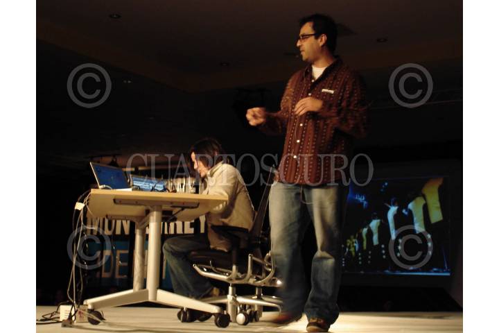 NUEVO LEÓN, MONTERREY,15NOVIEMBRE2006.-El Centro de Estudios Superiores de Diseño de Monterrey, CEDIM, organizó la cuarta edicion del Design Week Monterrey 2006. En el que asistieron mas 1800 participantes y 10 conferencistas. De Tijuana para el mundo, Jorge Verdin y Pepe Mogt, del colectivo NORTEC, ambientaron el evento. FOTO:PERLA VALTIERRA/CUARTOSCURO.COM