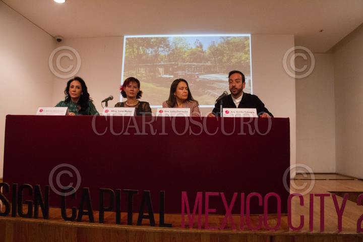 CIUDAD DE MÉXICO, 14FEBRERO2018.- María Laura Medina, Irene Muñoz, Lidia Camacho, Emilio Cabrera, en la conferencia de prensa del World Design Capital, que se realizará en el Palacio de Bellas Artes. FOTO: VICTORIA VALTIERRA / CUARTOSCURO.COM