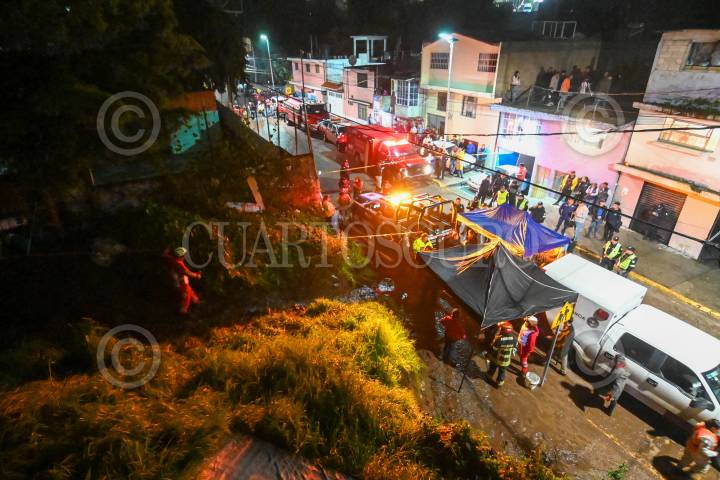 NAUCALPAN, ESTADO DE MÉXICO, 16SEPTIEMBRE1024. Un deslave privado por las lluvias provocó la muerte de cuatro personas en Los Cuartos. Los hechos se registraron en la colonia La Raquelito, en donde cuerpos de rescate trabajan a marcha forzadas para buscar sobrevivientes. FOTO: CUARTOSCURO.COM