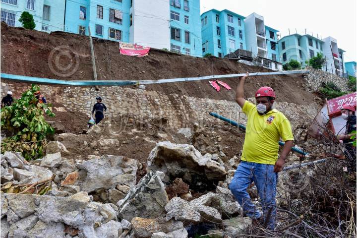 ACAPULCO, GUERRERO, 01OCTUBRE2024.- Un grupo de rescatistas de la Ciudad de México y de Protección Civil de Acapulco realizaron la búsqueda De una mujer pide su hijo para corroborar o reo descartar qué sus cuerpos podrían estar sepultados bajo un deslave qué las lluvias provocaron en la unidad habitacional en Infonavit Alta Progreso, Las labores de rescate iniciaron esta mañana y hasta esta tarde aún seguían trabajando en el lugar. FOTO: CARLOS ALBERTO CARBAJAL/CUARTOSCURO.COM