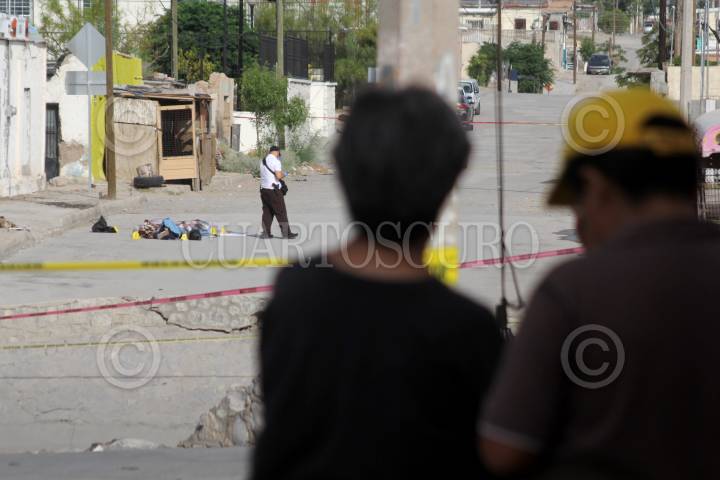 CIUDAD JUÁREZ, CHIHUAHUA, 26JULIO2018.- Los cuerpos de dos hombres sin cabeza fueron encontrados envueltos en cobijas color azul cielo y de estampados a cuadros, en el cruce de calles Uranio y Mauricio Corredor, de la colonia Barrio Alto. Los cráneos cercenados fueron hallados en el mismo sitio, dentro de bolsas negras de plástico. Tras el reporte hecho por vecinos, agentes ministeriales arribaron al lugar para dar inicio a las indgatorias. No se reportaron detenciones ligadas al doble asesinato. FOTO: NACHO RUÍZ /CUARTOSCURO.COM