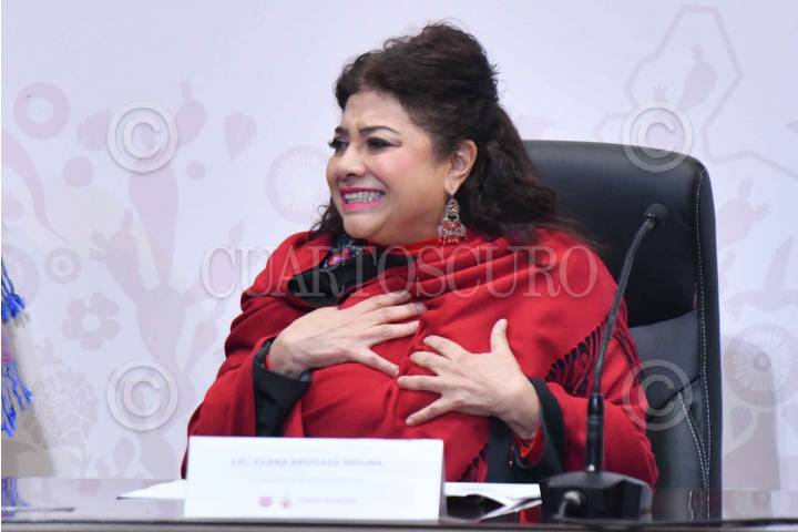 CIUDAD DE MÉXICO, 23DICIEMBRE2024.- Clara Brugada, jefa de Gobierno, durante su intervención en la que indicó los ejes que tendrá el presupuesto pasa la Ciudad de México durante 2025. FOTO: MARIO JASSO/CUARTOSCURO.COM