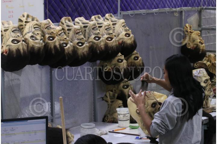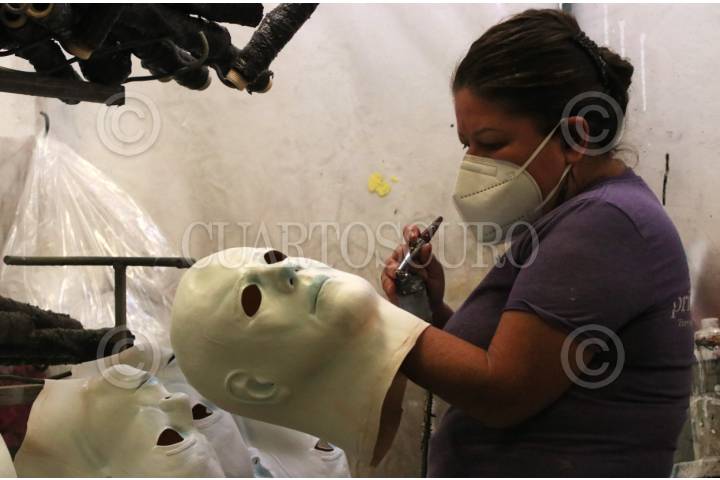 JIUTEPEC, MORELOS, 05MARZO2024.- Máscaras de látex de un personaje de una historieta en la fábrica Caretas REV. Esta empresa, con más de 70 años de operación, elabora máscaras para Halloween, de personajes de historietas y películas con licencia y creaciones propias que exporta a Estados Unidos. Empleando a más de 400 trabajadores (este número puede aumentar hasta 800 trabajadores en ciertas temporadas), produce tres millones de unidades anuales, se considera la más grande fábrica de su tipo en el país y Latinoamérica. FOTO: MARGARITO PÉREZ RETANA/CUARTOSCURO.COM