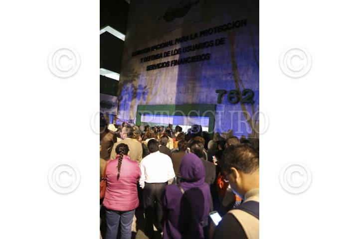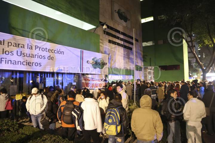 MÉXICO, D.F., 22DICIEMBRE2014.- Ahorradores se manifestaron a las afueras de la CONDUSEF donde la tarde hoy realizaron una reunión con autoridades federales para dar una solución al conflicto que dejó la liquidación por fraude de Ficrea. FOTO: SAÚL LÓPEZ /CUARTOSCURO.COM