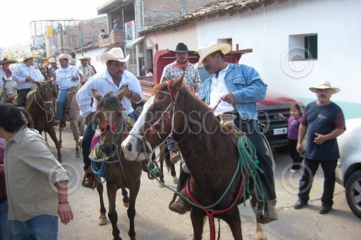 AHUACUOTZINGO, GUERRERO, 17ENERO2011.- Cabalgata a caballo que realizaron habitantes del municipio de Ahuacuotzingo, en honor a San Antonio Abad, santo patrono de esta población, como parte de las festividades que realizan, en su día. FOTO: OSCAR ALVARADO/CUARTOCURO.COM