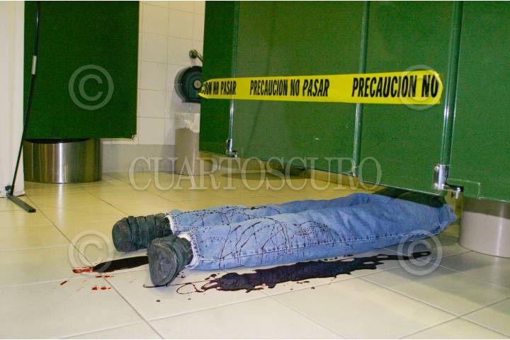 MEXICO, D.F. 15MARZO2008.- Gran casos de panico vivieron personas que asistieron a un cine al sur de la ciudad, debido a la campaña publicitaria de la pelicula DEXTER el cual, colocaron un maniquie bañado en sangre al interior de los baños simulando una persona muerta y ensangrentada. Esto ocaiono que varias personas sufrieran crisis nerviosa y que movilizaran unidades de emergencia. La gerente del cine fue detenida por policias sectoriales y remitida al ministerio publico de la colonia Portales.FOTO: SAÚL LÓPEZ/CUARTOSCURO.COM
