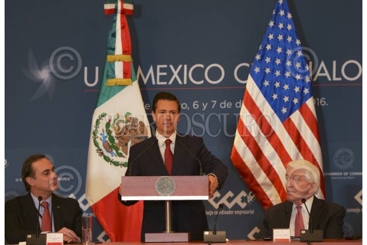 CIUDAD DE MÉXICO, 07DICIEMBRE2016.- El Presidente Enrique Peña Nieto sostuvo un encuentro hoy con el U.S.-Mexico CEO Dialogue, en el que resaltó que es gracias a mecanismos como el Diálogo Económico de Alto Nivel (DEAN) y el propio CEO Dialogue, que los dos países han construido juntos una plataforma de integración, competitividad y crecimiento. FOTO: PRESIDENCIA /CUARTOSCURO.COM