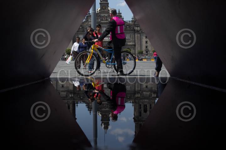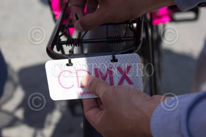 CIUDAD DE MÉXICO, 19ABRIL2017.- Con motivo del Día Mundial de la bicicleta integrantes de la secretaria de Medio Ambiente de la Ciudad de México repartieron chalecos reflejantes y placas del mismo material para la seguridad de los ciclistas capitalinos. FOTO: GALO CAÑAS /CUARTOSCURO.COM