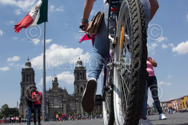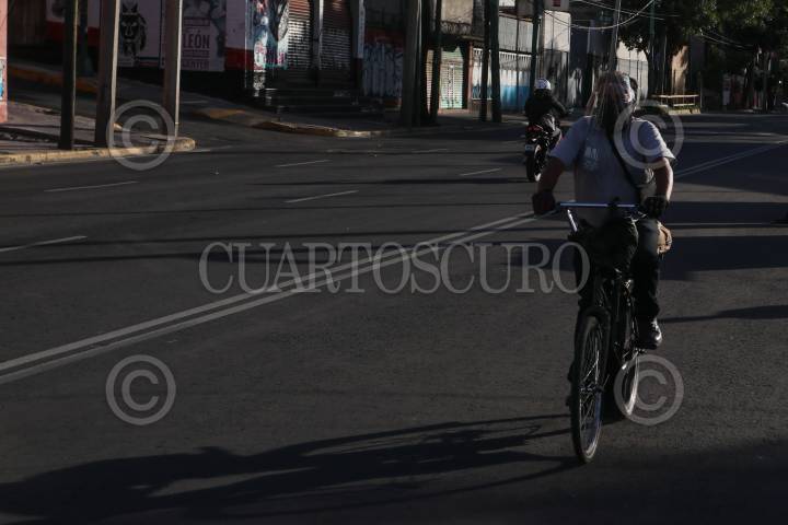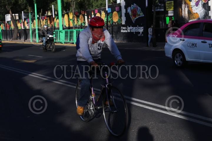 Una mujer utiliza su bicicleta como medio de transporte en Eje Central Lázaro Cárdenas, colonia Doctores